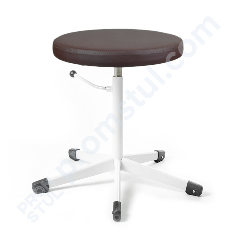 Для м'якості використовується пінополіуретан товщиною 40 мм, який не продавлюється з часом. Табурет промисловий оббитий стійкою до пошкоджень та хімічної обробки штучною шкірою*